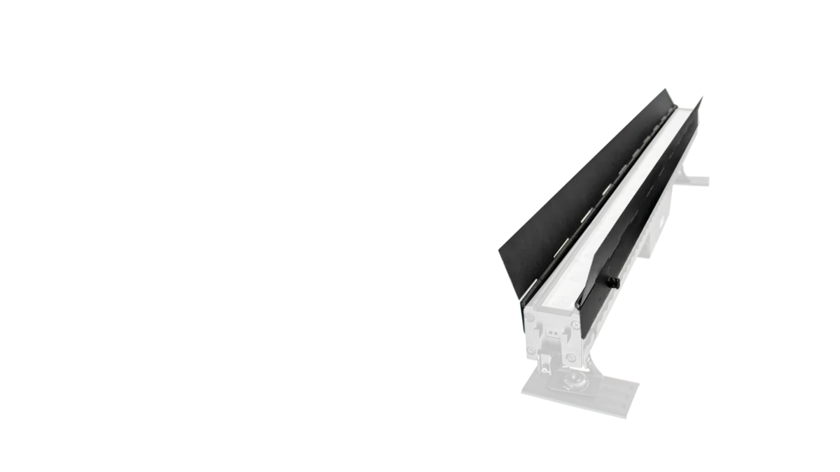 Die optional erhältliche Torblende dient als Blendschutz, um störende Lichtreflexe zu vermeiden. Sie kann auch verwendet werden, um den Lichtstrahl Ihres AX2 zu kontrollieren, indem sie den Lichtausfall reduziert und ein Abschatten ermöglicht. Sie lässt sich ohne zusätzliches Werkzeug an beiden Seiten des AX2 anbringen.