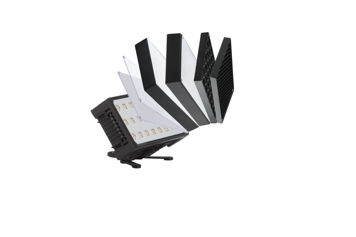 Das Hydrapanel ist flexibler einsetzbar, als jedes andere Panel auf dem Markt, da es über vielfältige Montageoptionen verfügt und durch die 6 möglichen Aufsätze die Möglichkeit bietet, den Lichtstrahl je nach Bedarf anzupassen und zu kontrollieren.
