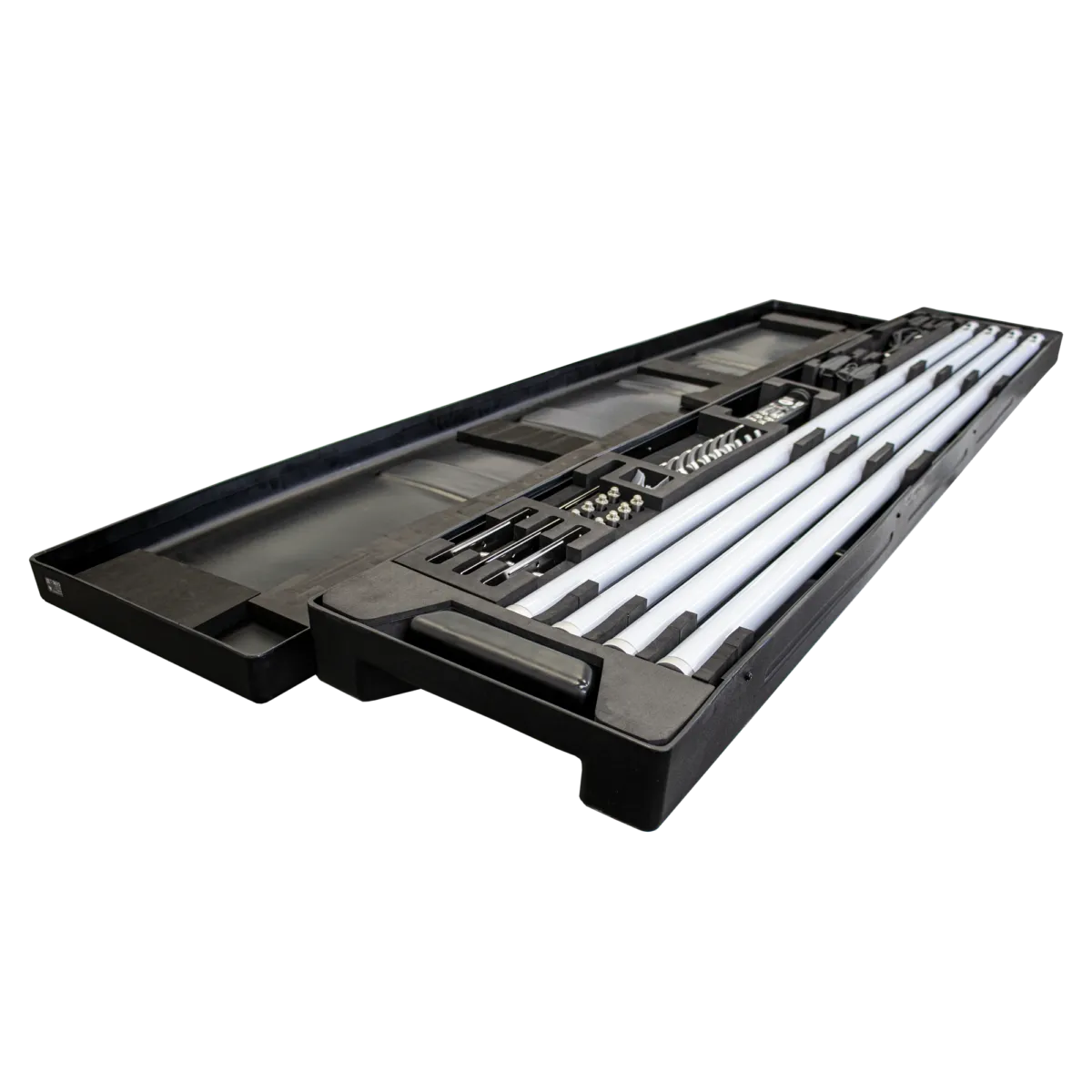 Set mit 4 Hyperion Tubes und allem wichtigen Zubehör in einem robusten Kunststoffkoffer. Mit dem mitgelieferten AC-Verteilerkabel können 4 Netzteile angeschlossen werden, um die Tubes im Koffer aufzuladen.
