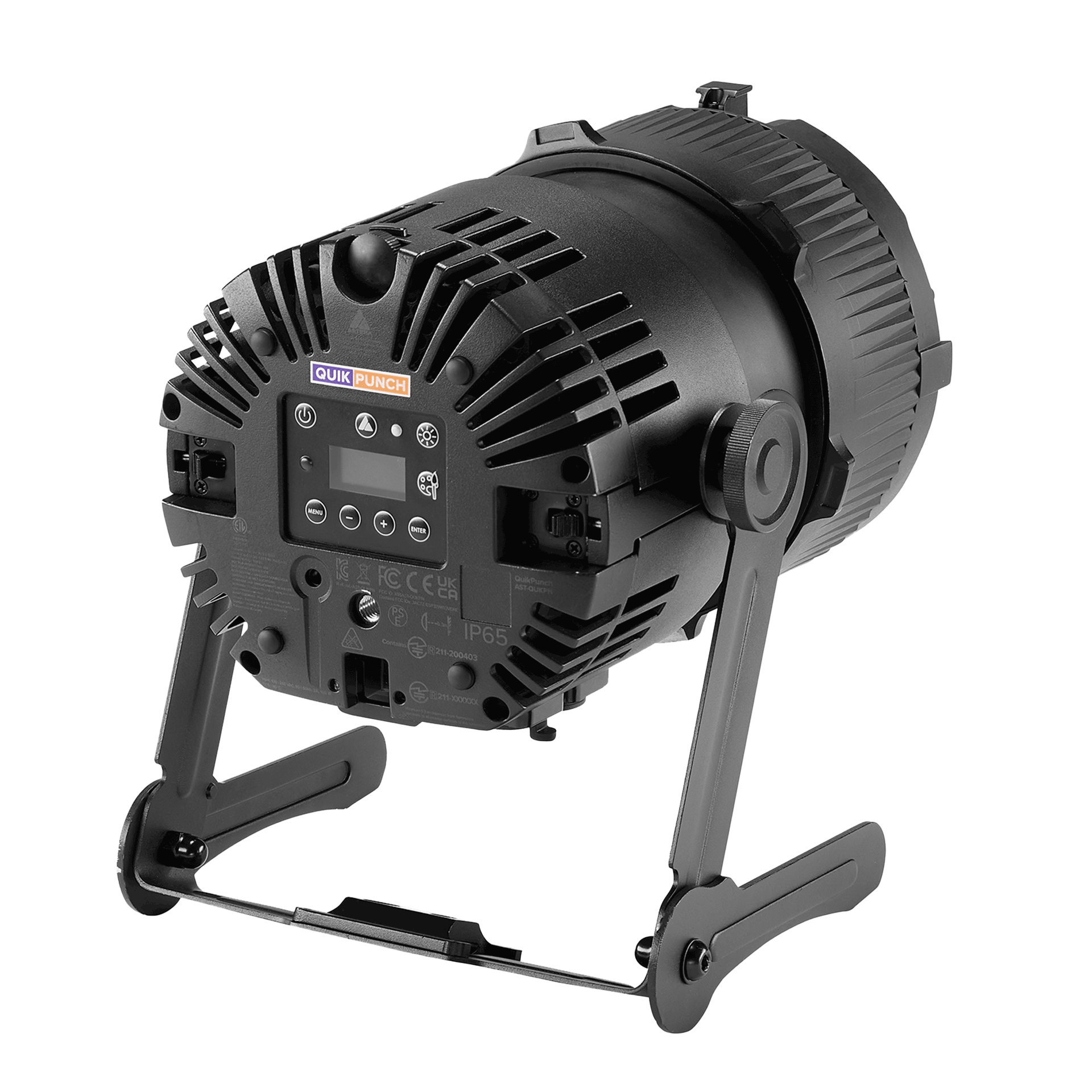 Da der QuikPunch einem 200-W-LED-PAR-Scheinwerfer für den Bühneneinsatz entspricht und dabei 4,5 Stunden maximale Laufzeit bietet, ist er der energieeffizienteste Scheinwerfer, der je hergestellt wurde. Dank der batteriebetriebenen PrepBox und ihrer ChargingPlate ist er zudem für eine einfache und schnelle Bedienung vorbereitet.