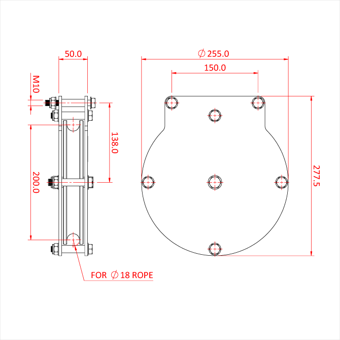 Komplett mit Kugellagern, profiliert für Faserseile und bereit zur Aufnahme einer unserer Befestigungsarten