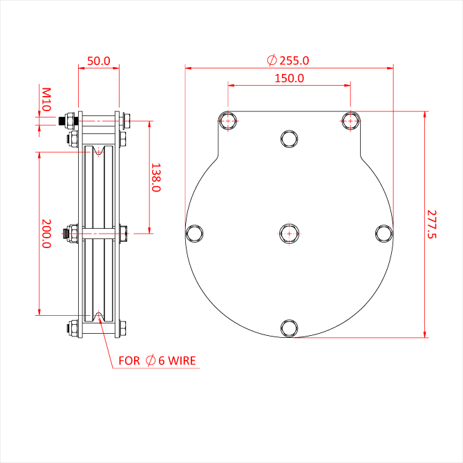 Komplett mit Kugellagern, profiliert für Stahlseile und bereit zur Aufnahme einer unserer Befestigungsarten