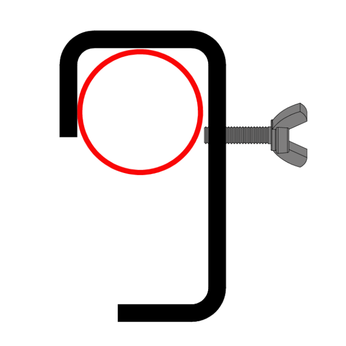 Ein Montagehaken aus Stahl, geeignet für Rohre mit einem Durchmesser von 60 bis 75 mm.