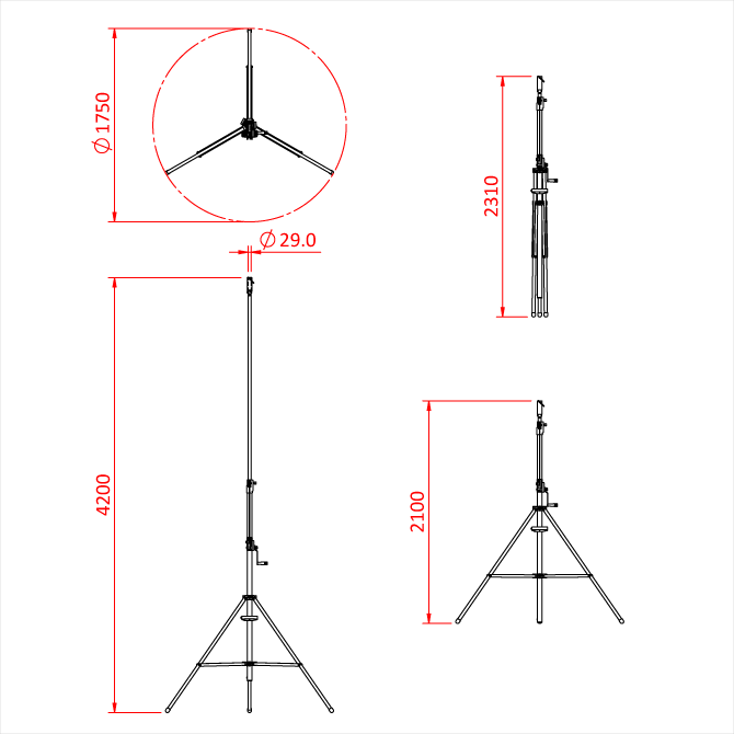 Max. Höhe 420 cm, Gewicht 18,5 kg, WLL 60 kg