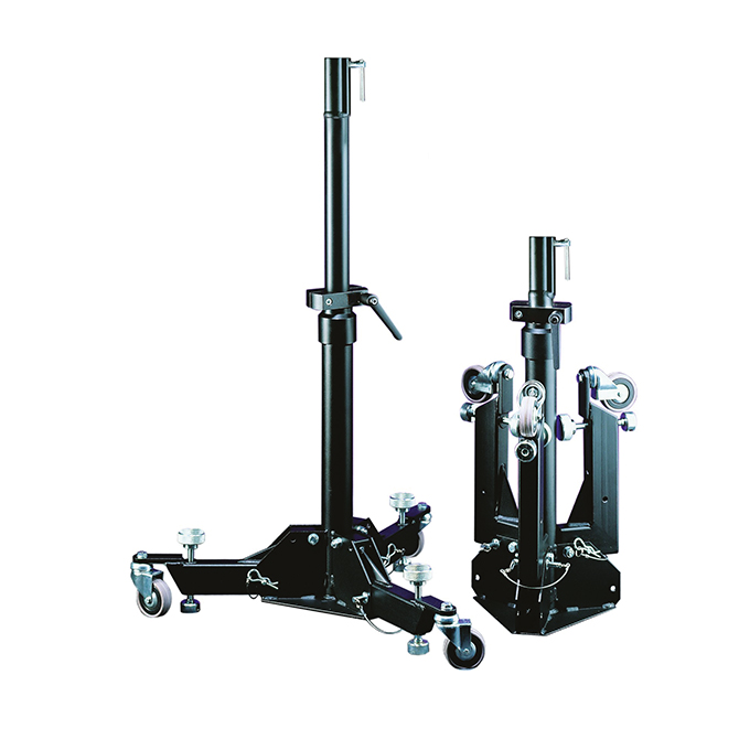 Gefertigt aus hochfestem Stahl mit einem Mittelteil aus dickwandigem Aluminium, ist dieses professionelle Stativ für Verfolgerscheinwerfer auf einen langlebigen und störungsfreien Betrieb auch bei schweren Geräten ausgelegt. Wird komplett mit Lenkrollen und Schraubfuss-Stützen geliefert. Dies ermöglicht eine einfache Positionierung, während die Schraubfüsse für eine stabile und ebene Aufstellung sorgen. Die Höhenverstellung lässt sich schnell einstellen und wird durch ein robustes, rundes Klemm-System zuverlässig fixiert. Die Stabilisierungsbeine lassen sich zur platzsparenden Lagerung seitlich an den Zentralmast anklappen. Für den mobilen Einsatz werden die Beine mit Schnellverschlussstiften geliefert, für die feste Installation mit hochfesten Schrauben.