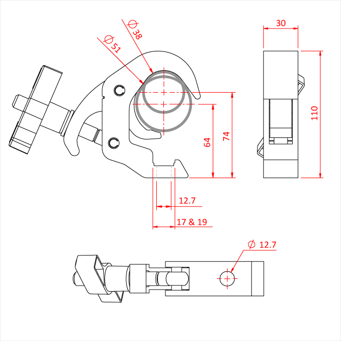 Montagehaken 38 - 51 mm, WLL 100 kg