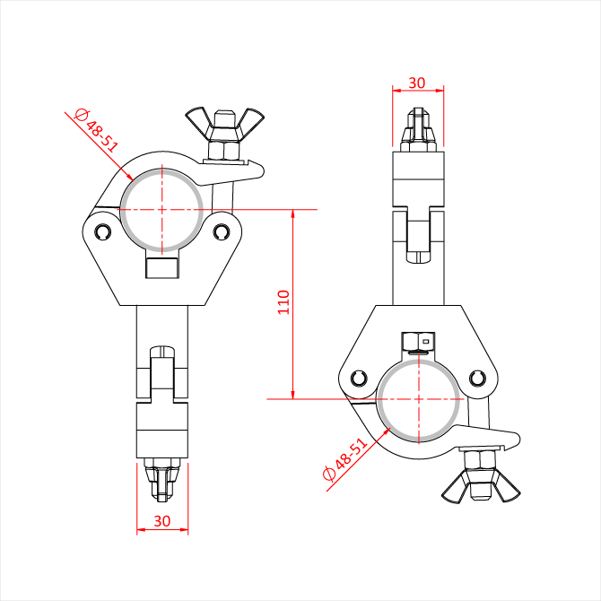 Sie eignen sich für Rohre mit einem Durchmesser von 48 mm bis 51 mm und sind 30 mm breit.