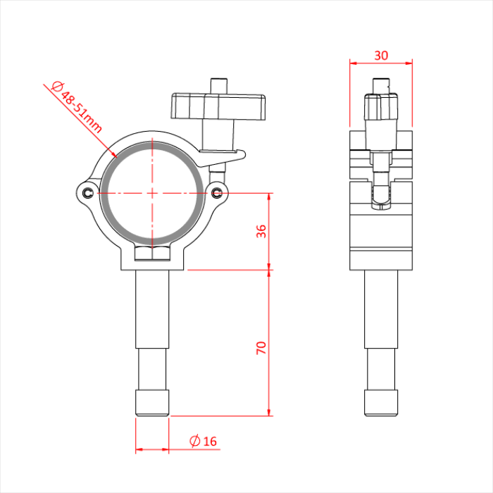 Rohrschelle 48 - 51 mm, mit Zapfen, WLL 100 kg