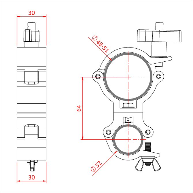 Drehbare Adapter-Doppelrohrschelle 48-51 mm auf 32 mm, WLL 100 kg