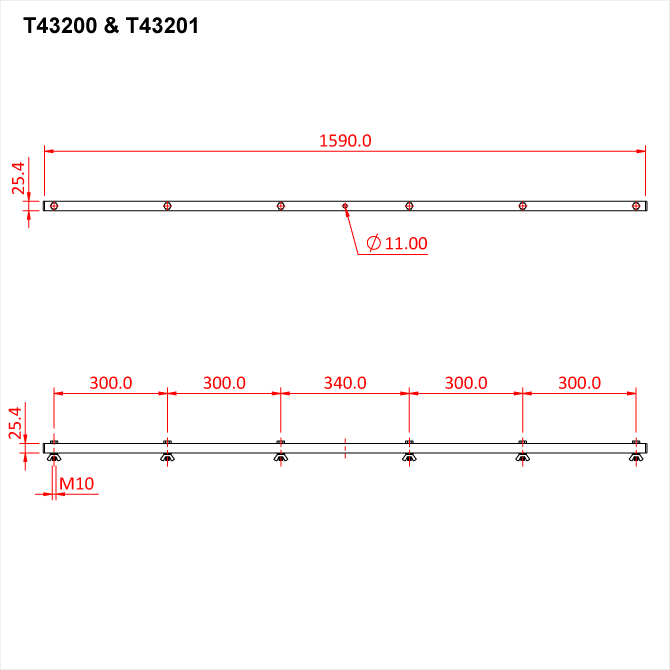Eine Reihe von T-Stangen aus Stahl mit Rechteckprofil, die in drei Grössen erhältlich sind und für die Verwendung mit einer Stangenbefestigung für T-Stangenständer oben vorgesehen sind.