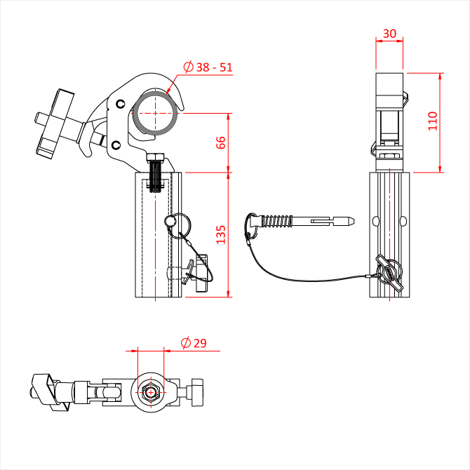 Ideal für die Verwendung mit Traversen, da er das Bracing nicht beschädigt.
