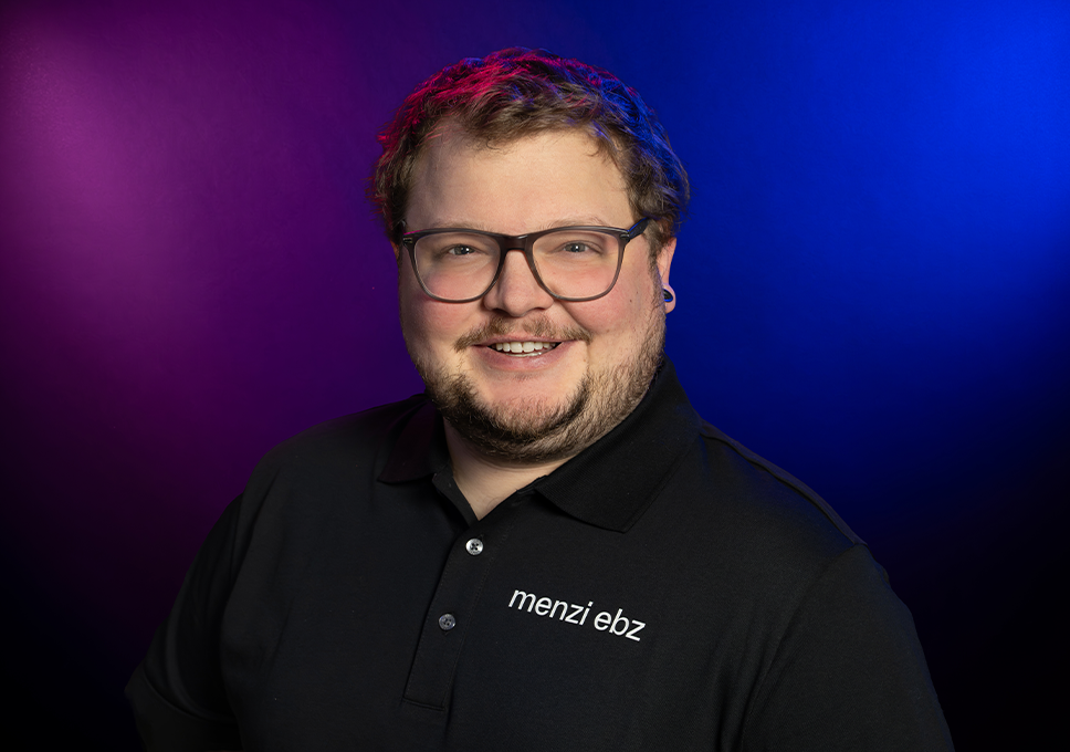 Seine Leidenschaft für Eventtechnik, insbesondere für Licht, entfachte bereits in seiner Kindheit. Nach zahlreichen Produktionen als Lichttechniker und Projektleiter ist Marco heute bei menzi ebz der kreative Impulsgeber und sprudelt vor Ideen – mehr, als er umsetzen kann.