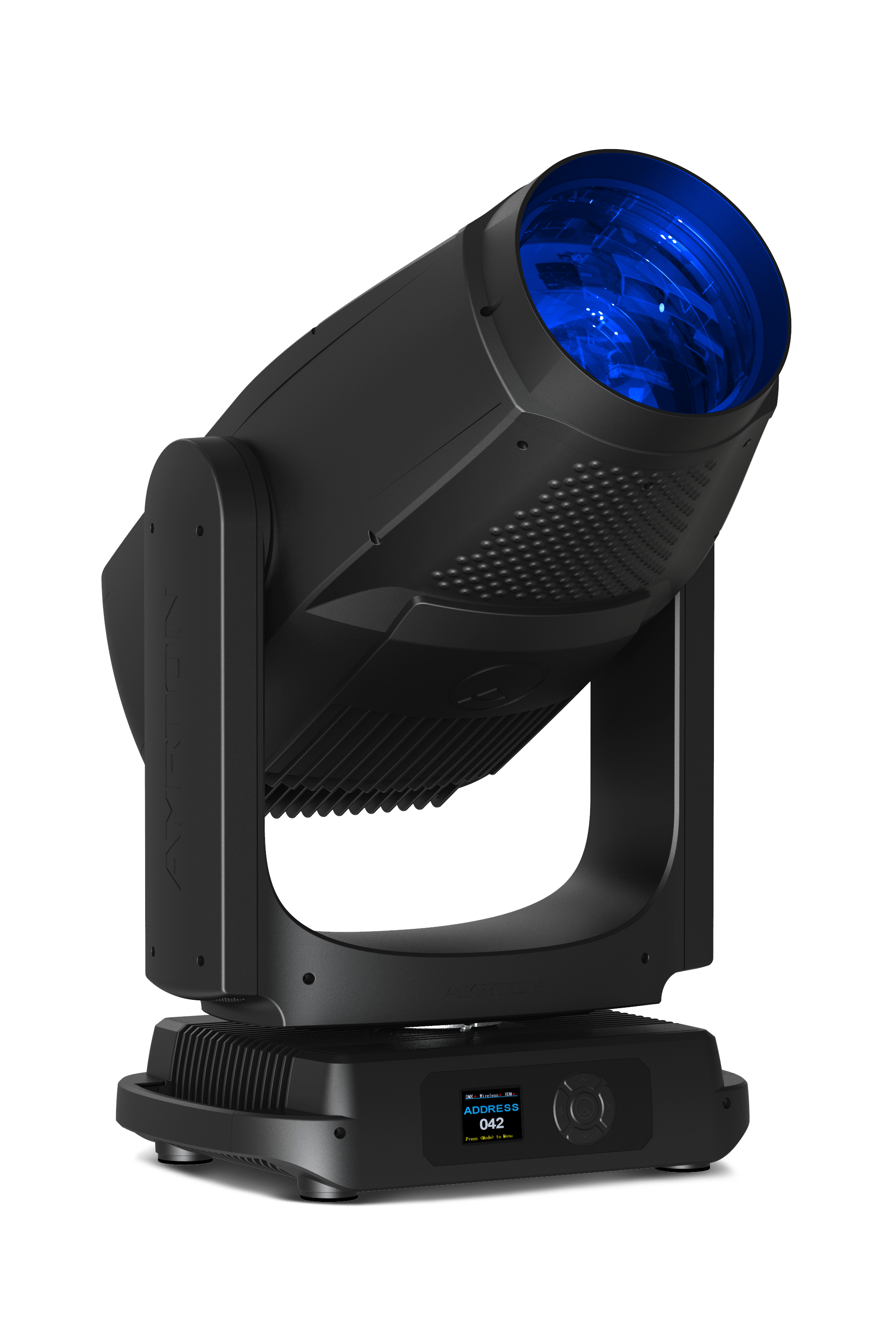 - Adressage DMX local du luminaire et des paramètres optionnels via le panneau de commande LCD intégré.