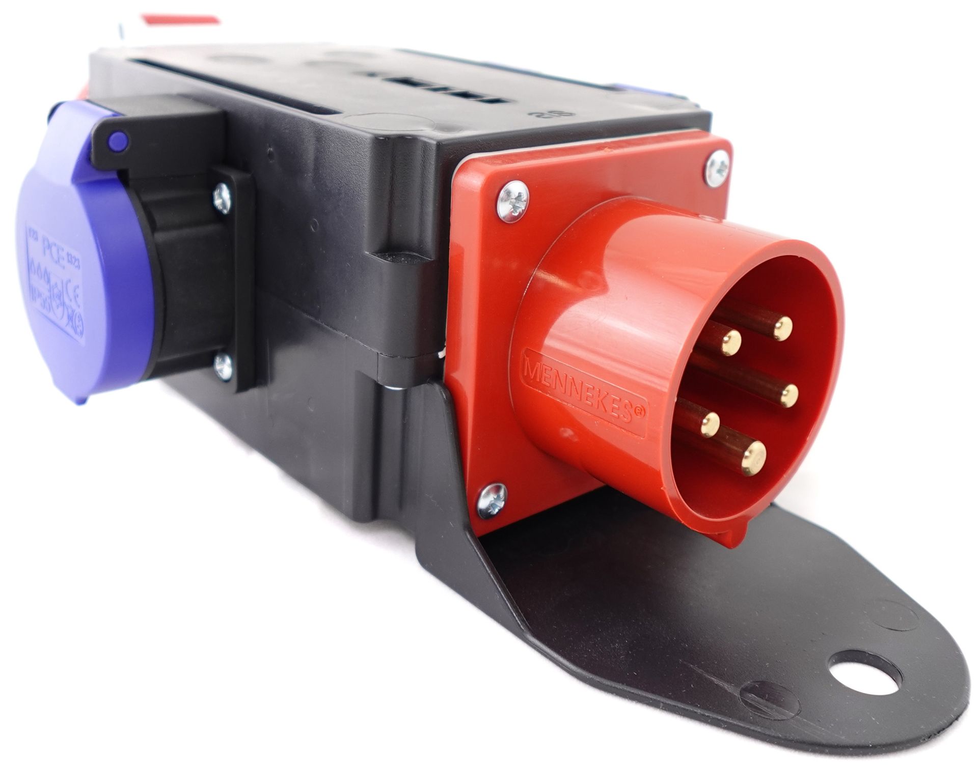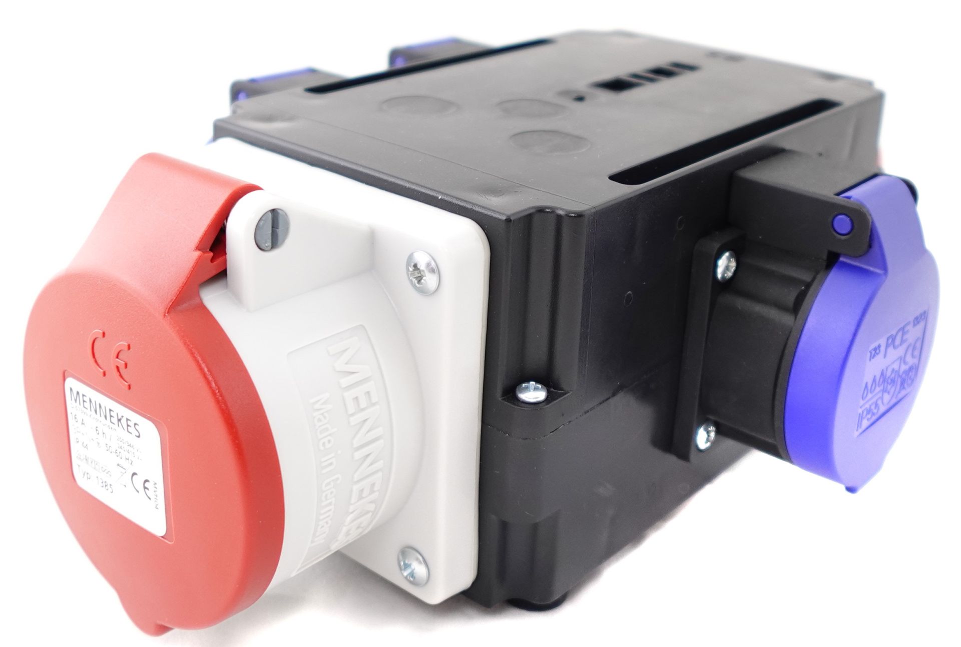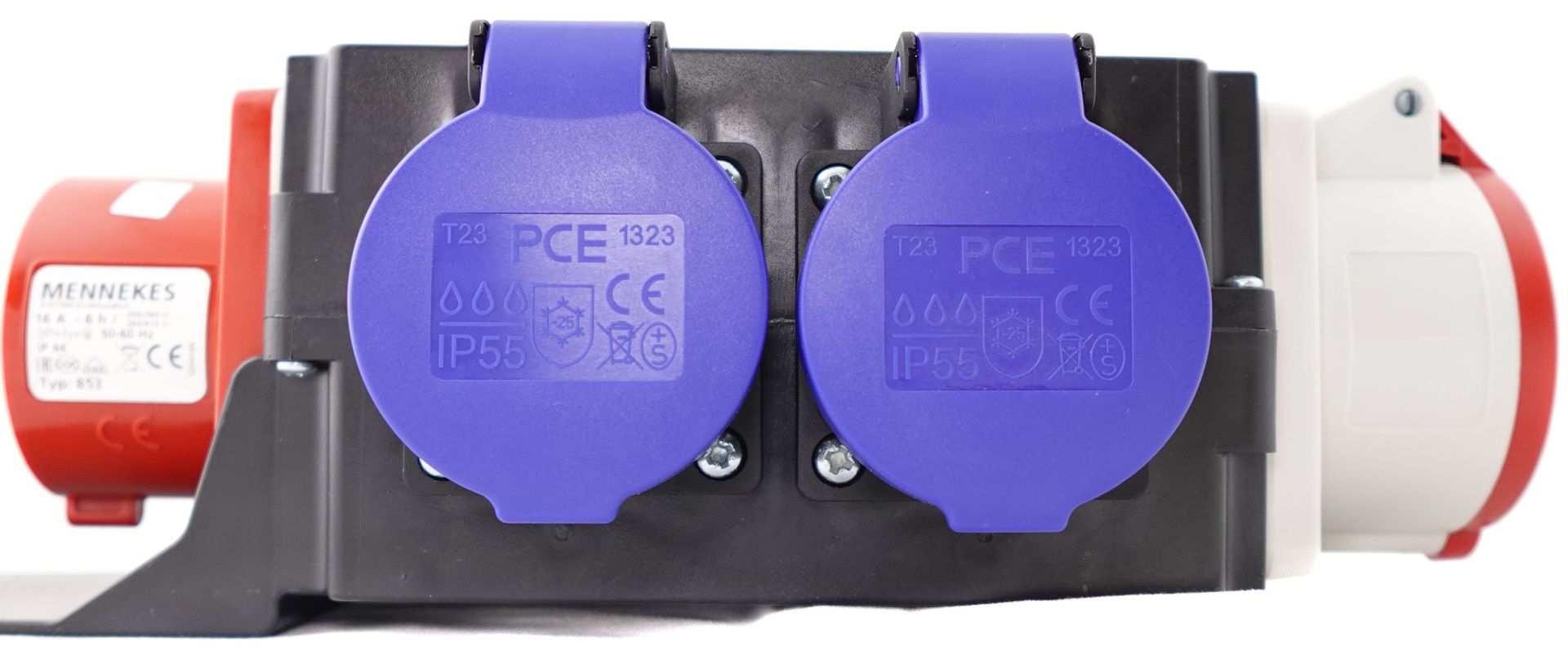 entrée : 1 x fiche mâle CEE16/5 ; sortie : 4 x T23 / 1 x prise CEE16/5