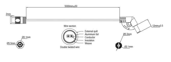 Rallonge de 5m pour PSU, câble mâle/femelle
