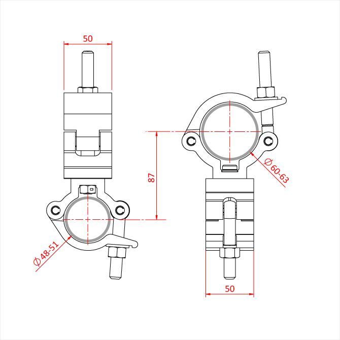 Collier adaptateur pivotant double 60-63 mm sur 48-51 mm, WLL 500 kg