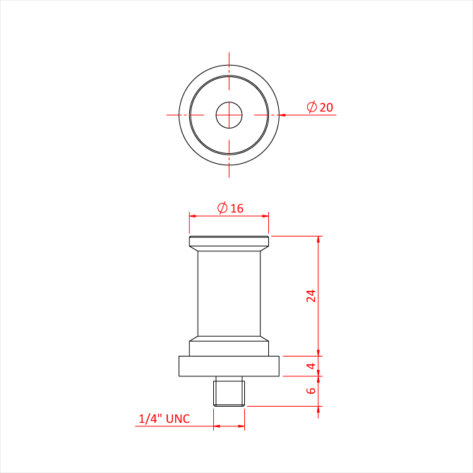 Doughty Engineering Snap-In 1/4" Unc Camera Pivot
