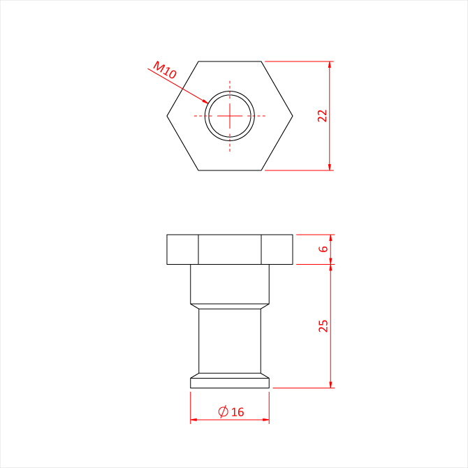 Ce tenon a une tête hexagonale et peut tourner librement s'il n'est pas bloqué par la vis moletée.