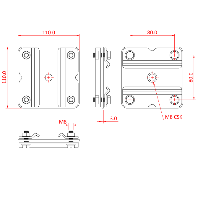 Doughty Engineering Studio Rail 80 90 Degree Crossover Bracket, avec 4 X Rail Clamps