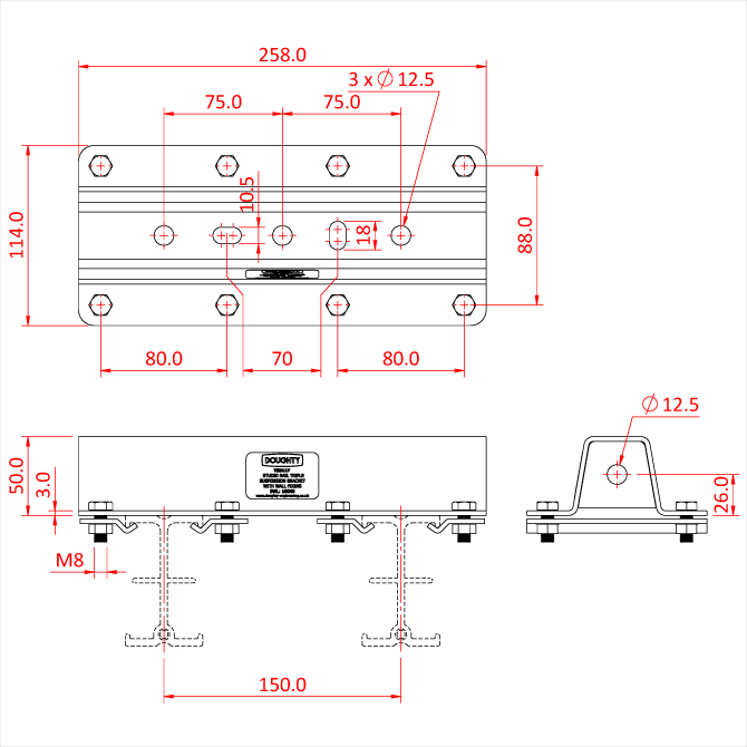 Doughty Engineering Studio Rail 80 Single Rail Suspension Bracket, également pour montage mural