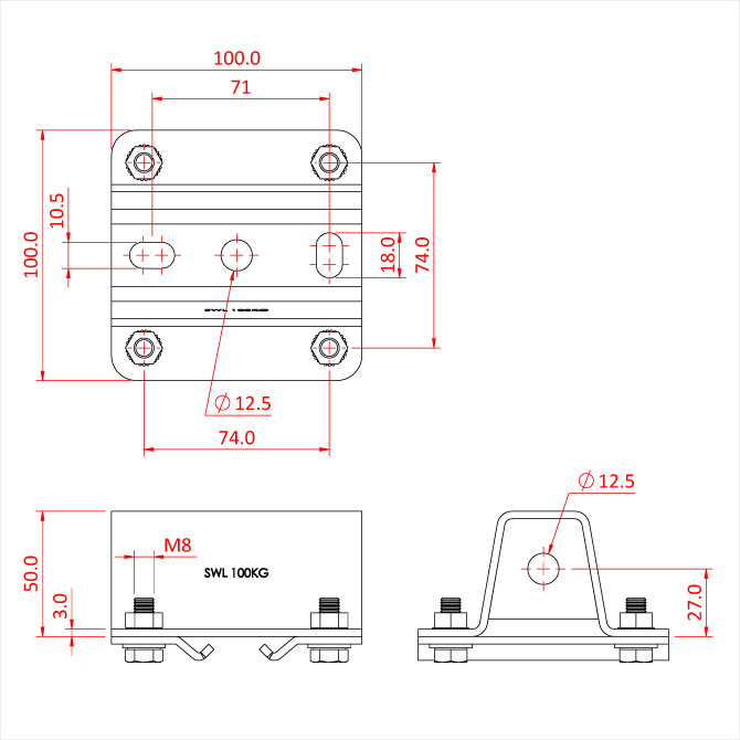 | Charge max. Capacité de charge [en kg] | 100 |