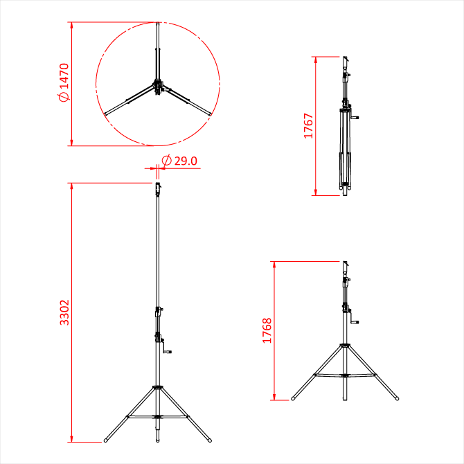 Max. hauteur 330 cm, poids 13,8 kg, WLL 60 kg