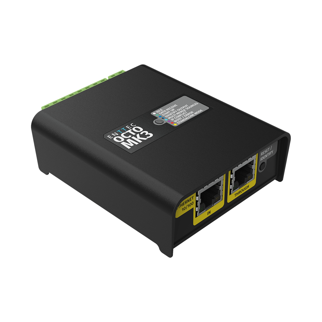 L’OCTO MK3 est un puissant convertisseur de pixels eDMX-vers-LED avec quatre sorties et mode overdrive, capable de transmettre jusqu’à 32 univers. Robuste et fiable, il peut être connecté directement à des luminaires LED et valorise les projets architecturaux, commerciaux et de divertissement. Conçu pour un déploiement rapide, il prend en charge les protocoles Art-Net, sACN, ESP et KiNet et fonctionne avec plus de 20 bandes LED SPI conformes aux normes industrielles.