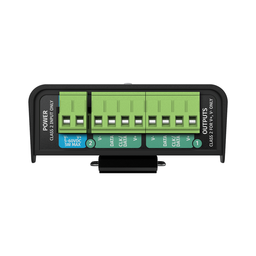 Avec une plage d’entrée de 5–60 V CC inégalée dans l’industrie, l’OCTO MK3 peut être directement alimenté via vos bandes ou points LED par l’un des deux connecteurs. Il n’est donc plus nécessaire d’ajouter d’alimentations ou de câblages séparés, ce qui simplifie l’installation et fait gagner du temps et de l’argent.
