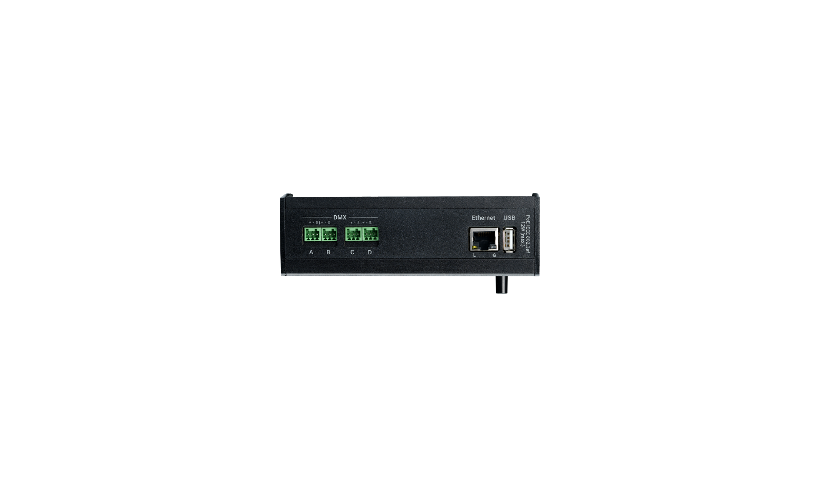 Le grandMA3 4Port Node est un convertisseur puissant permettant de convertir les données réseau en DMX. Le nœud se monte facilement, rapidement et sans outils sur un rail DIN, émet quatre univers DMX de manière synchrone à partir de chaque session grandMA3 et peut être entièrement alimenté par PoE (Power over Ethernet).