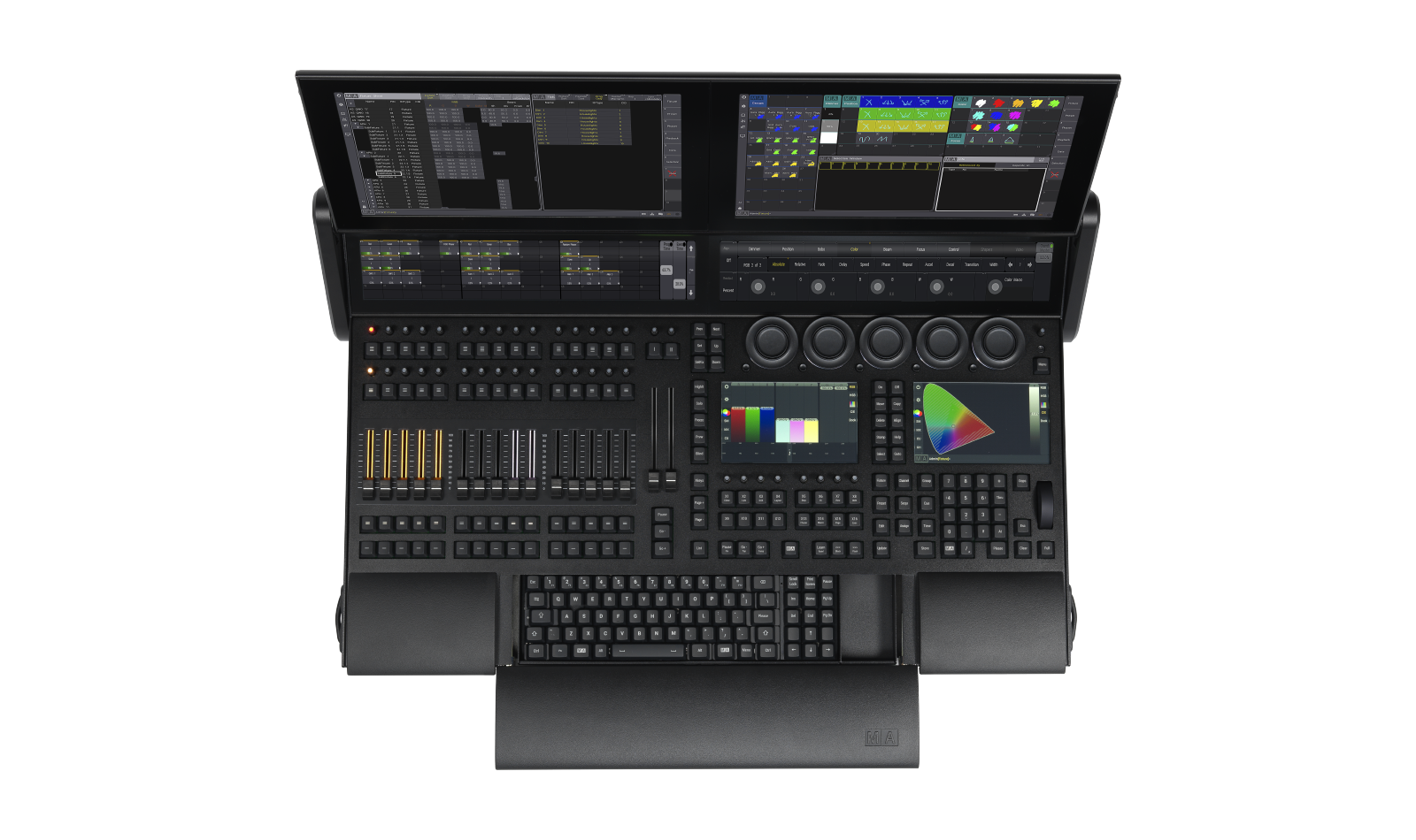 | Protocole de contrôle | Code temporel, DMX512, MA-Net2, MA-Net3, MIDI, OSC, sACN |