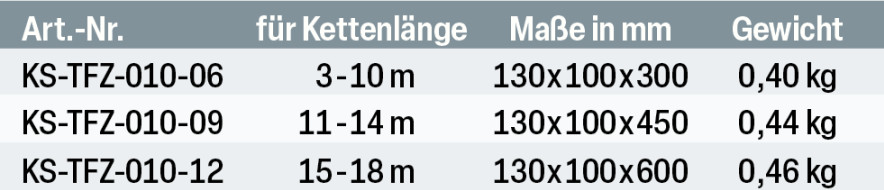 | Longueur de la chaîne: | 10 m, 11 m, 12 m |