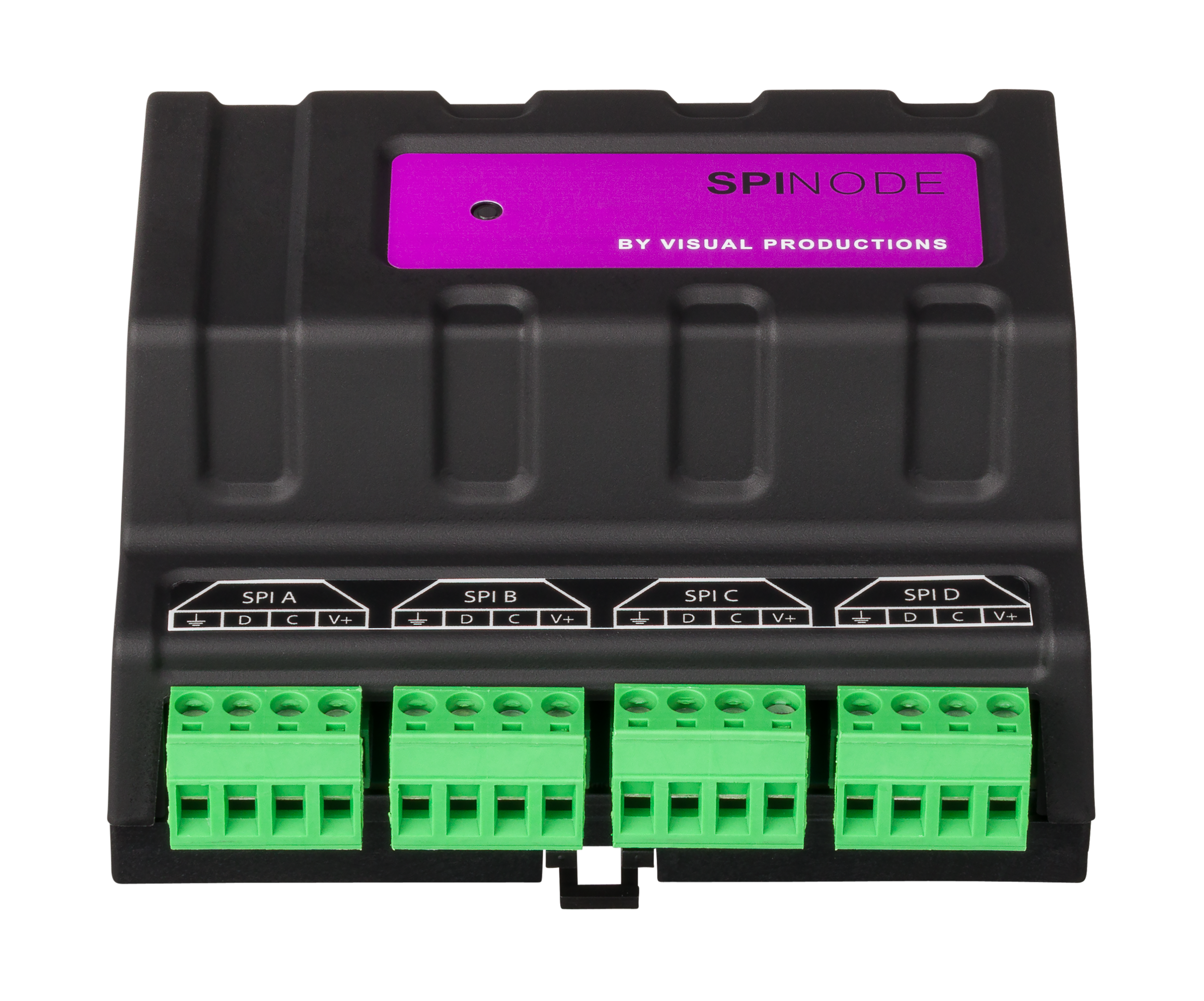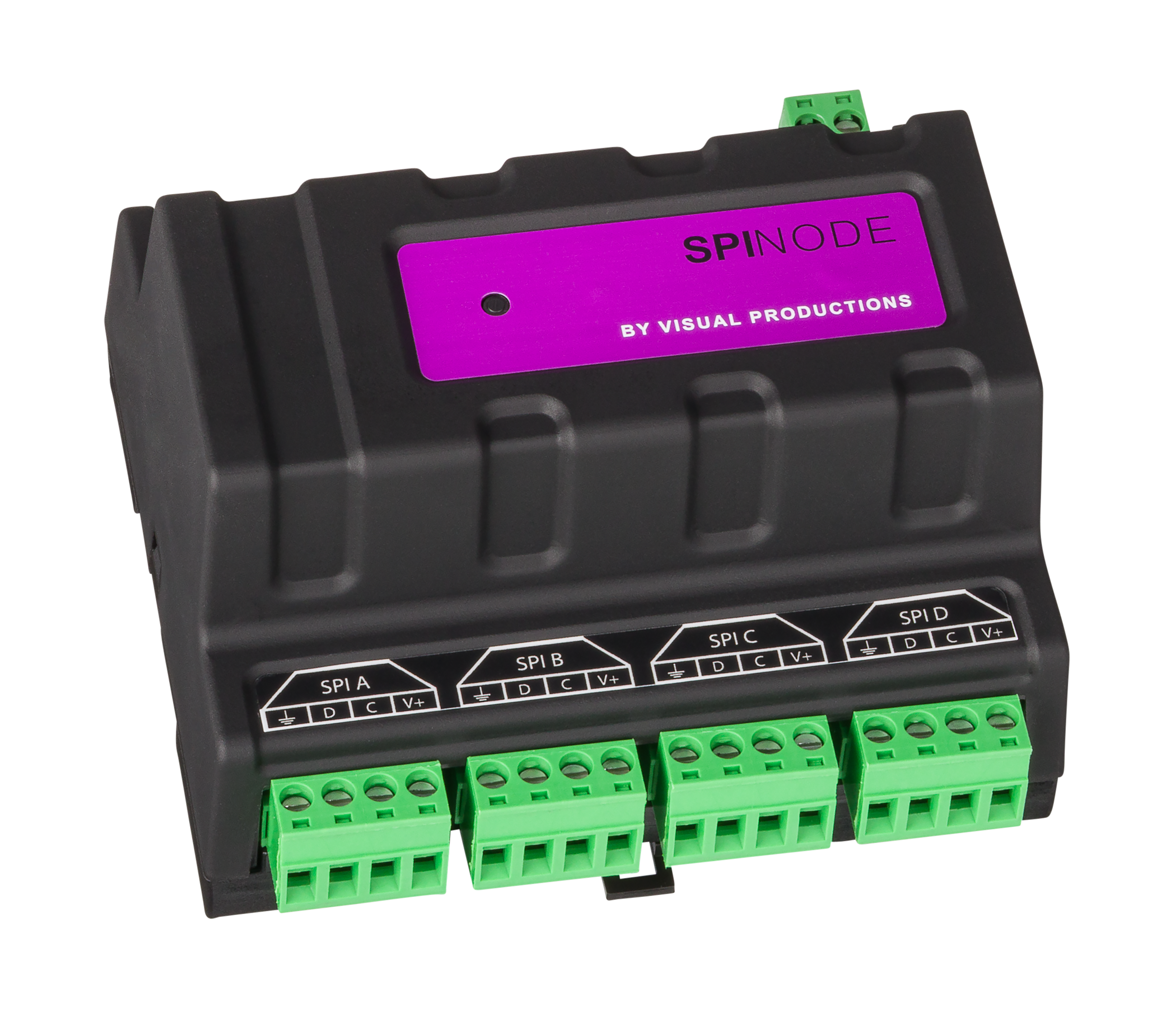 Le SpiNode est un contrôleur SPI à 4 ports qui a été développé pour traduire sans effort Art-Net et sACN en SPI. Il jette ainsi un pont entre le contrôle de l'éclairage et les installations mappées par pixels. Le SpiNode a été conçu pour être polyvalent et prend en charge tous les protocoles de puce SPI courants, ce qui garantit la compatibilité avec pratiquement tous les éclairages LED ou tous les rigs personnalisés. De plus, son format compact sur rail DIN le rend idéal pour les installations permanentes et les projets d'éclairage architectural dynamiques.