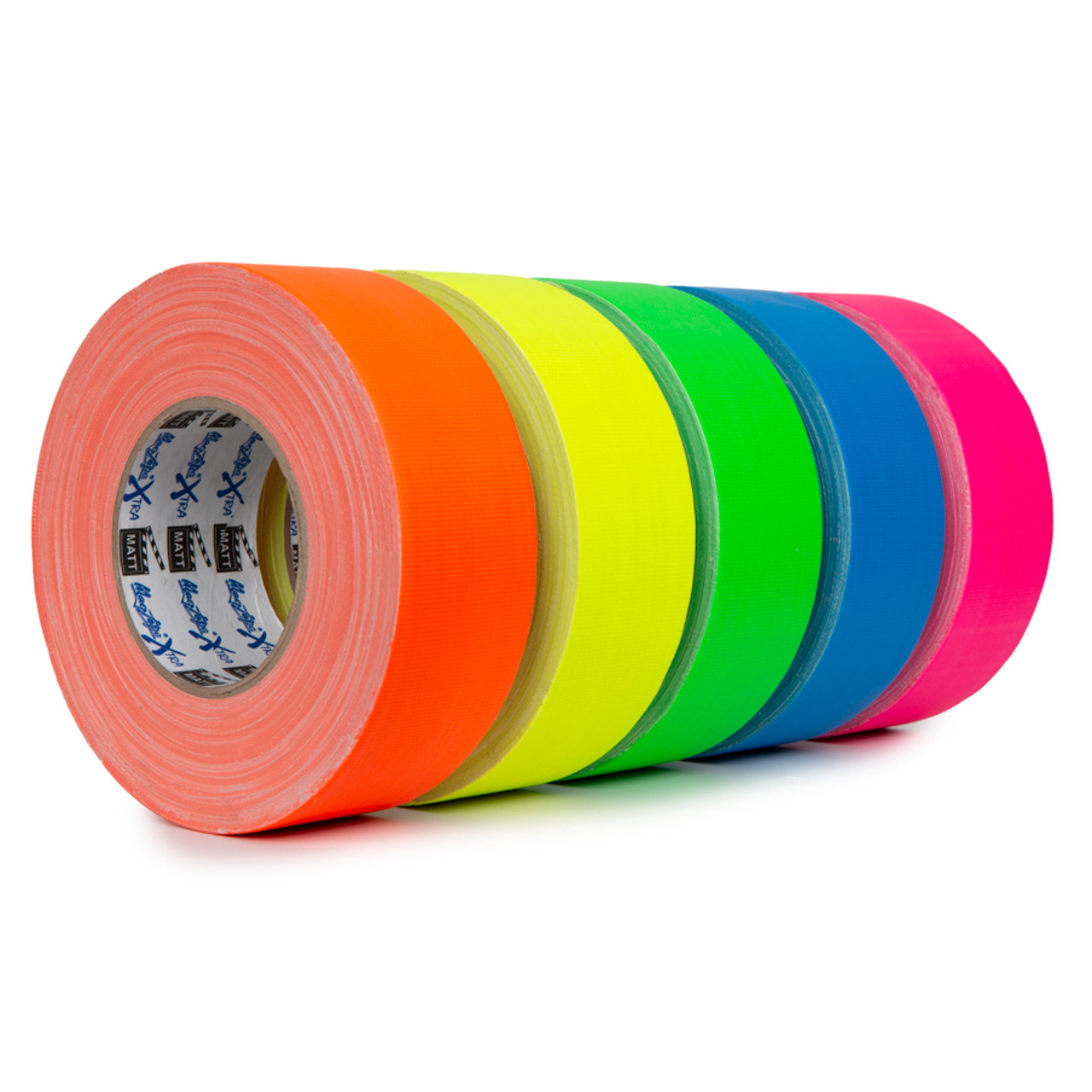 Die 5 fluoreszierenden Farben stechen hervor und sind besonders beliebt, um Bühnenpunkte und Requisitenmarkierungen in Theatern, bei Tourneen und beim Bau von Bühnenbildern zu kennzeichnen. Empfohlen für den kurzfristigen Einsatz, da UV-Einstrahlung, insbesondere Sonnenlicht, ein Ausbleichen der Farben verursachen kann.