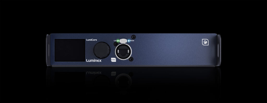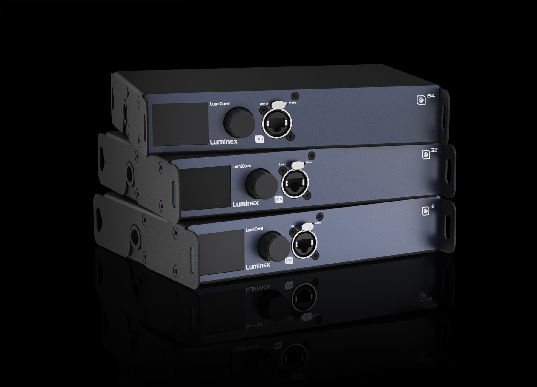 Da sich die Technologie in Richtung vollständig vernetzter Lösungen entwickelt (ArtNet oder sACN direkt zu den Scheinwerfern), bietet LumiCore die gesamte Flexibilität des LumiNodes, aber dies direkt im Netzwerk, wobei bis zu 128 Eingangsuniversen zusammengeführt und zu maximal 64 Ausgangsuniversen geroutet werden können. All dies mit extrem niedriger Latenz.