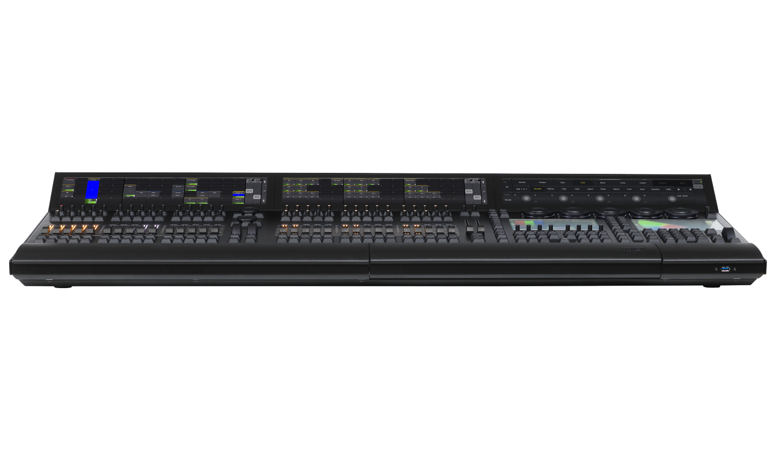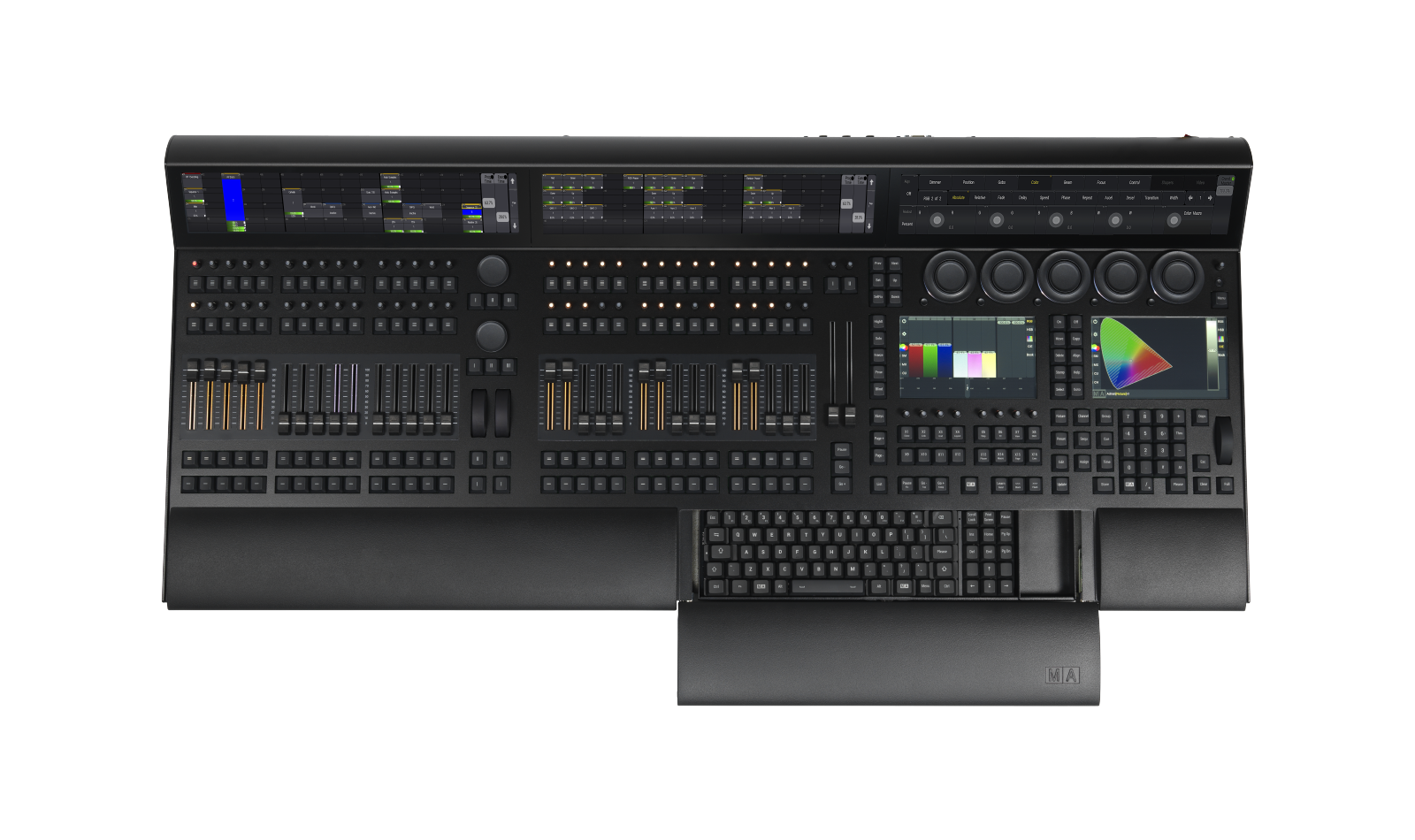 Lichtsteuerung für den Einsatz in Lichtregien mit 5 Touch Screens und 30 motorisierten Fadern