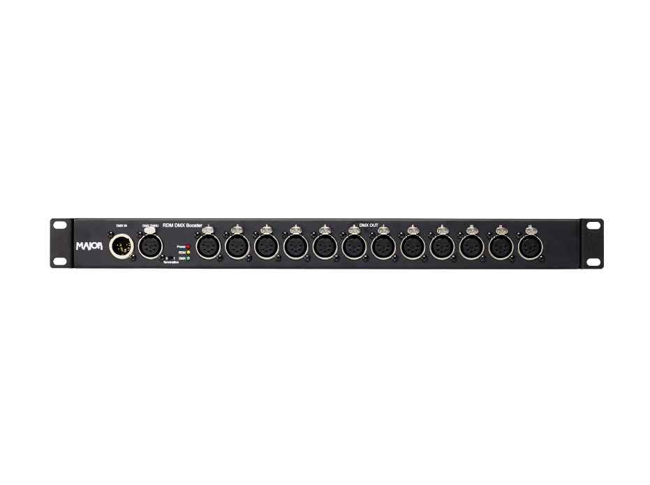 Major DMX-Booster verstärken und verteilen DMX-Signale bei voller RDM-Unterstützung. Um elektrische Störungen zu vermeiden, sind sowohl die DMX-Eingänge als auch die DMX-Ausgänge via Optokoppler potentialgetrennt.