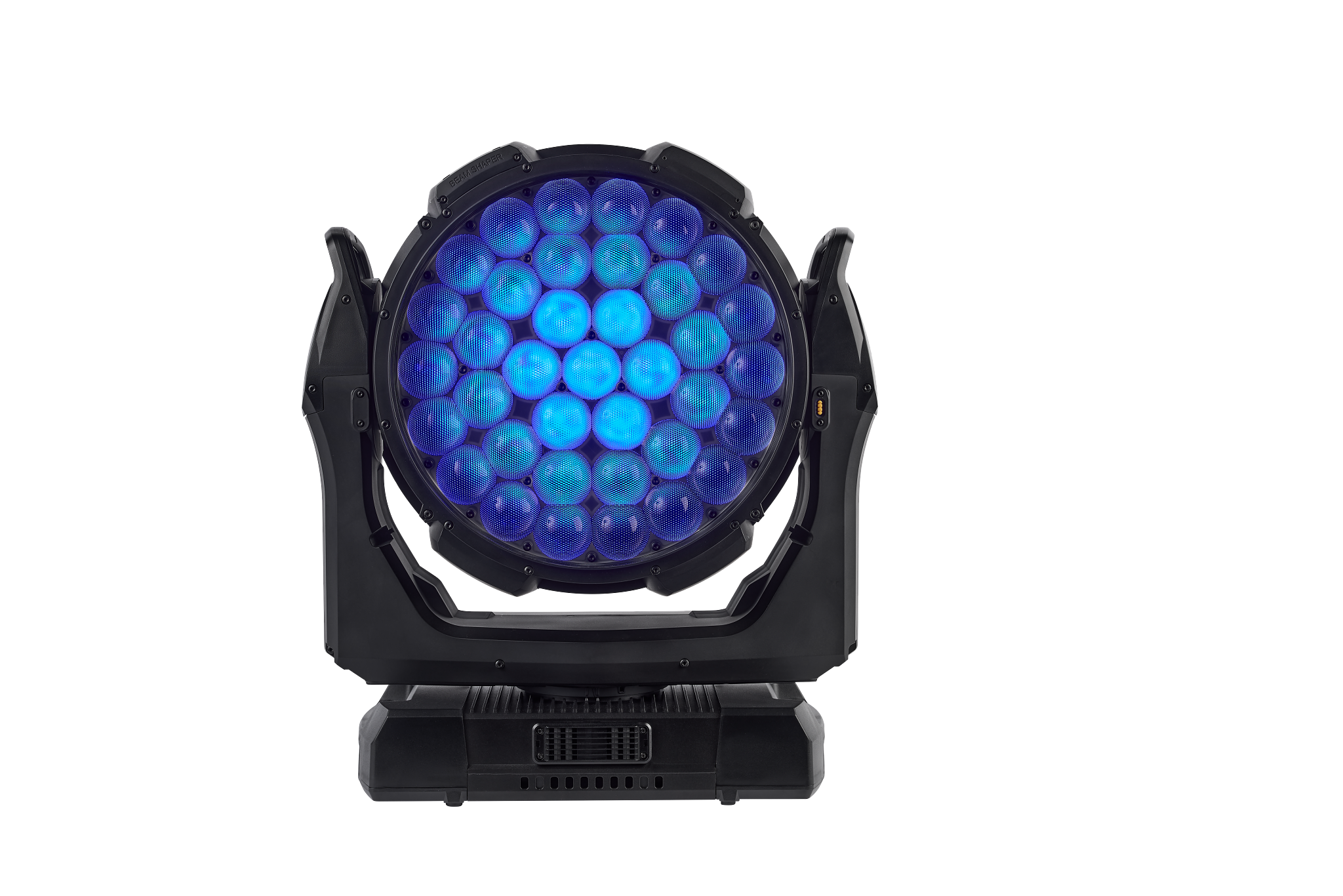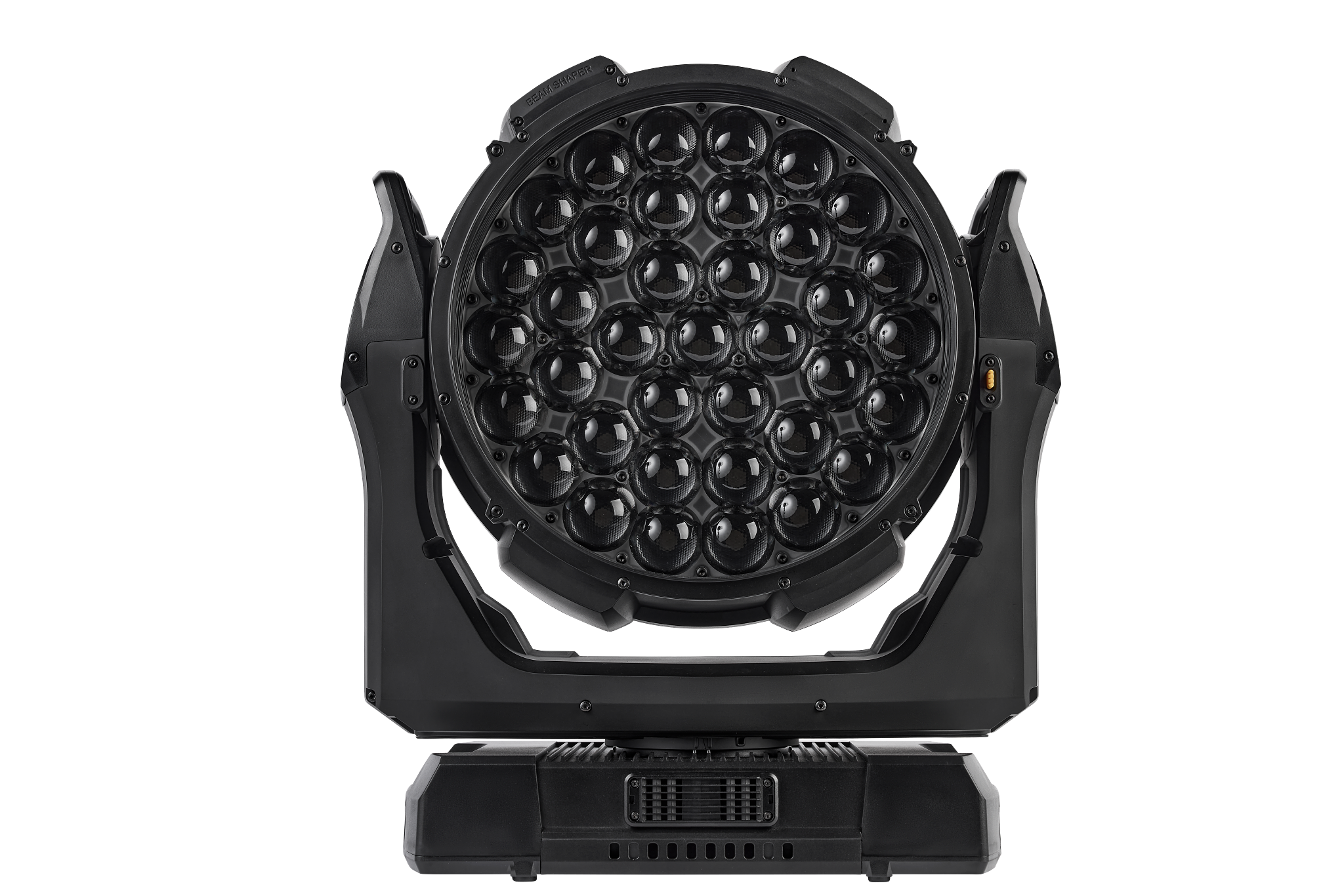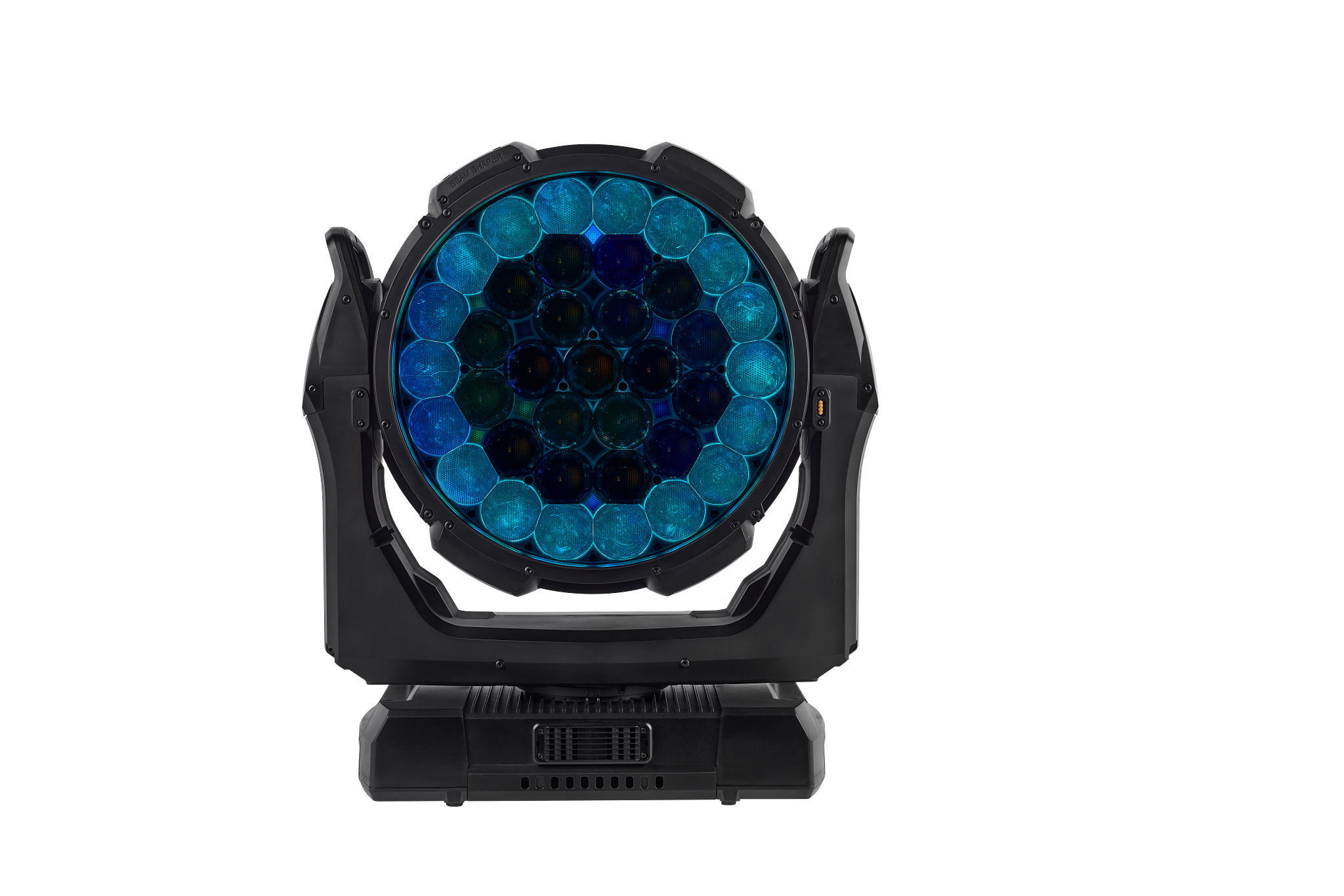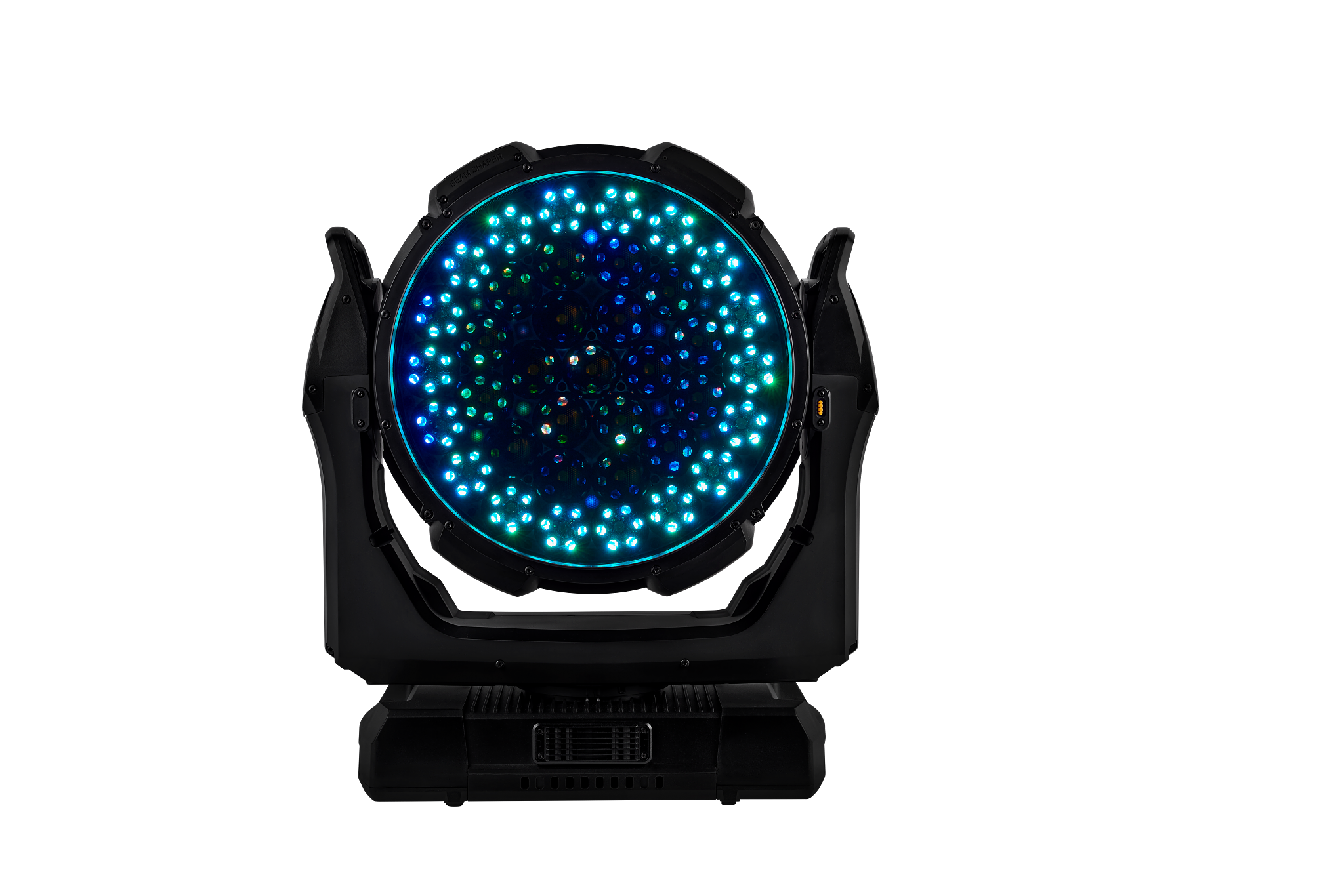 - 16-Bit-steuerbare Parameter: Beam- und Aura-Dimmen, Beam-Farbmischung, Zoom, BeamShaper-Indexierung, Pan und Tilt