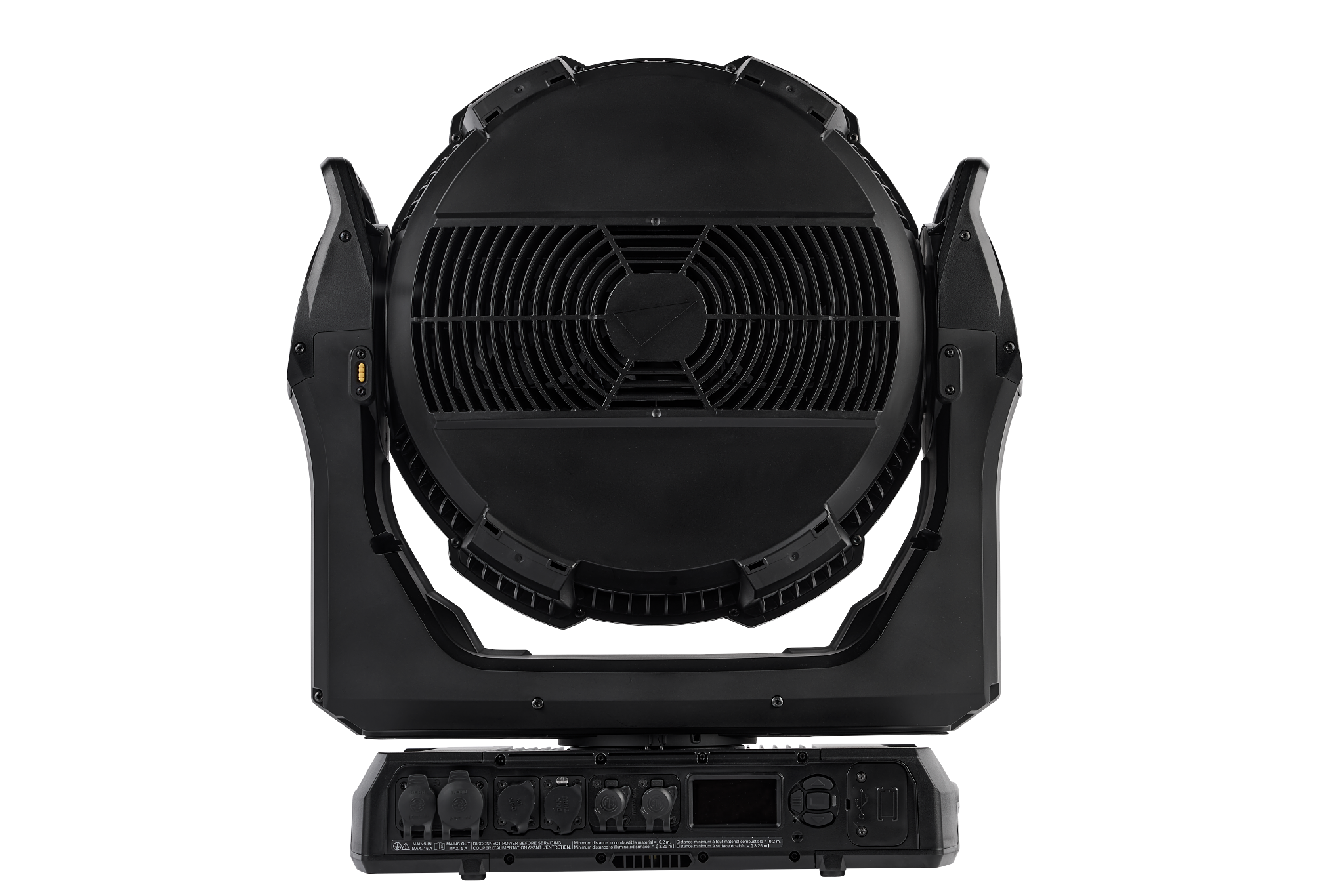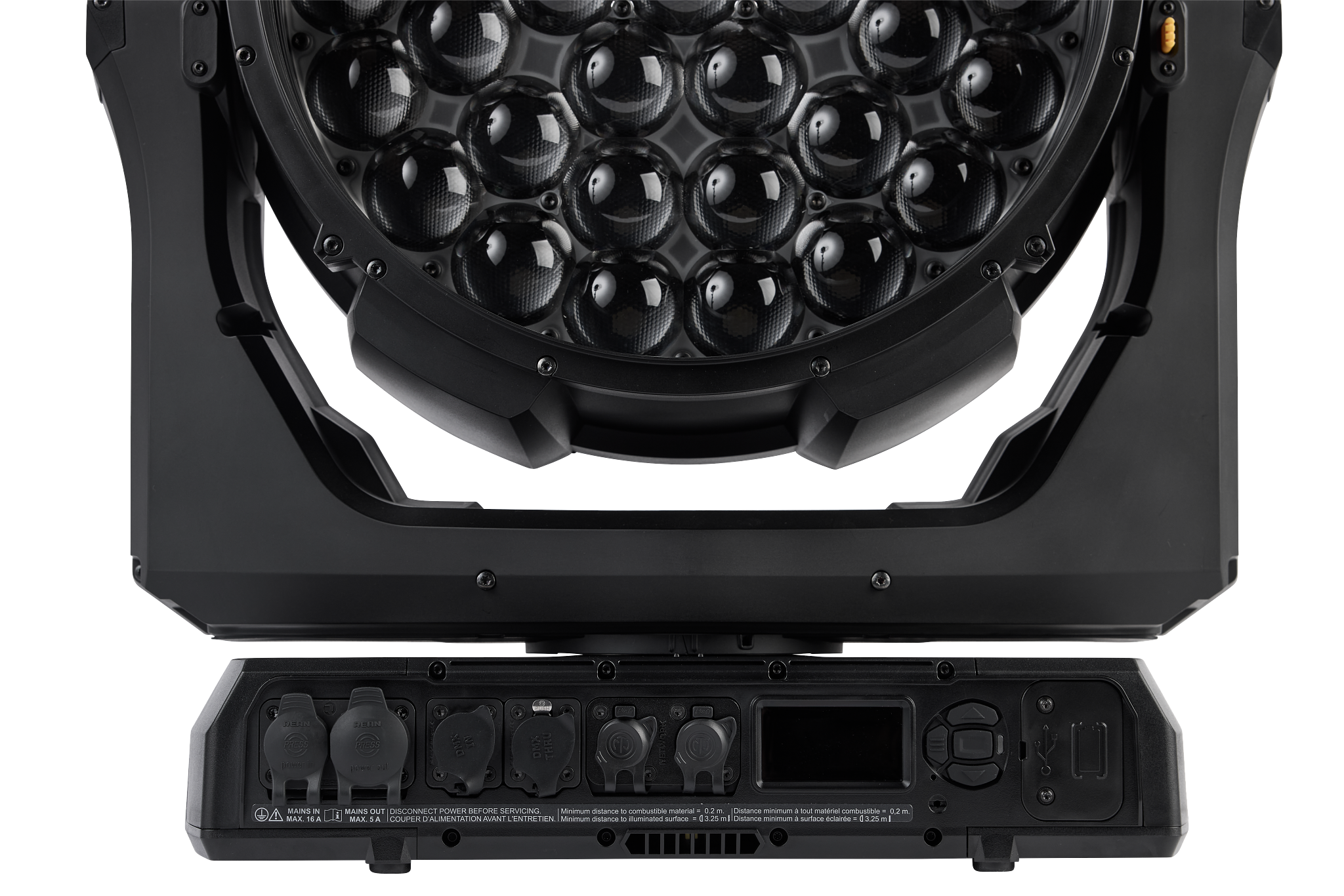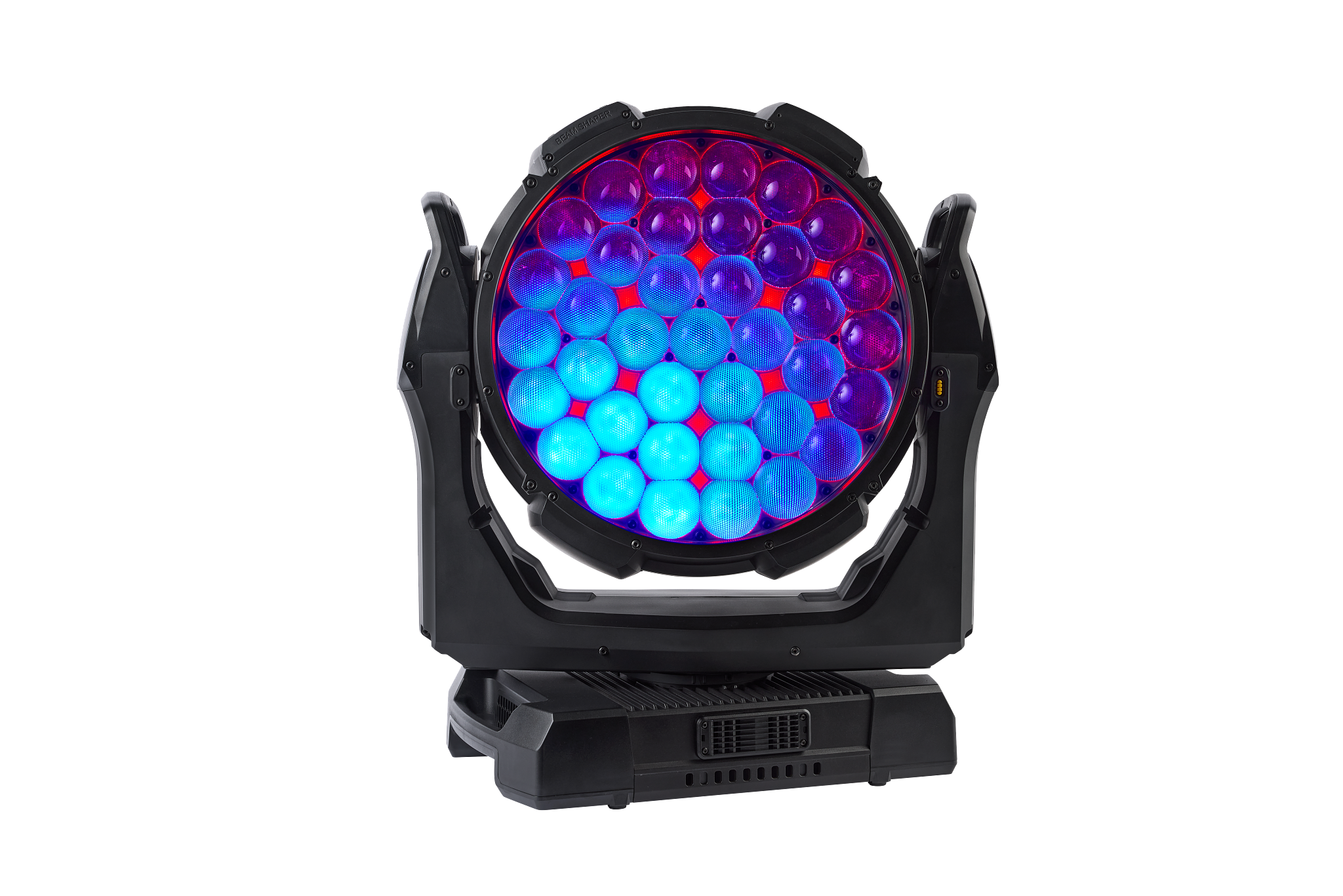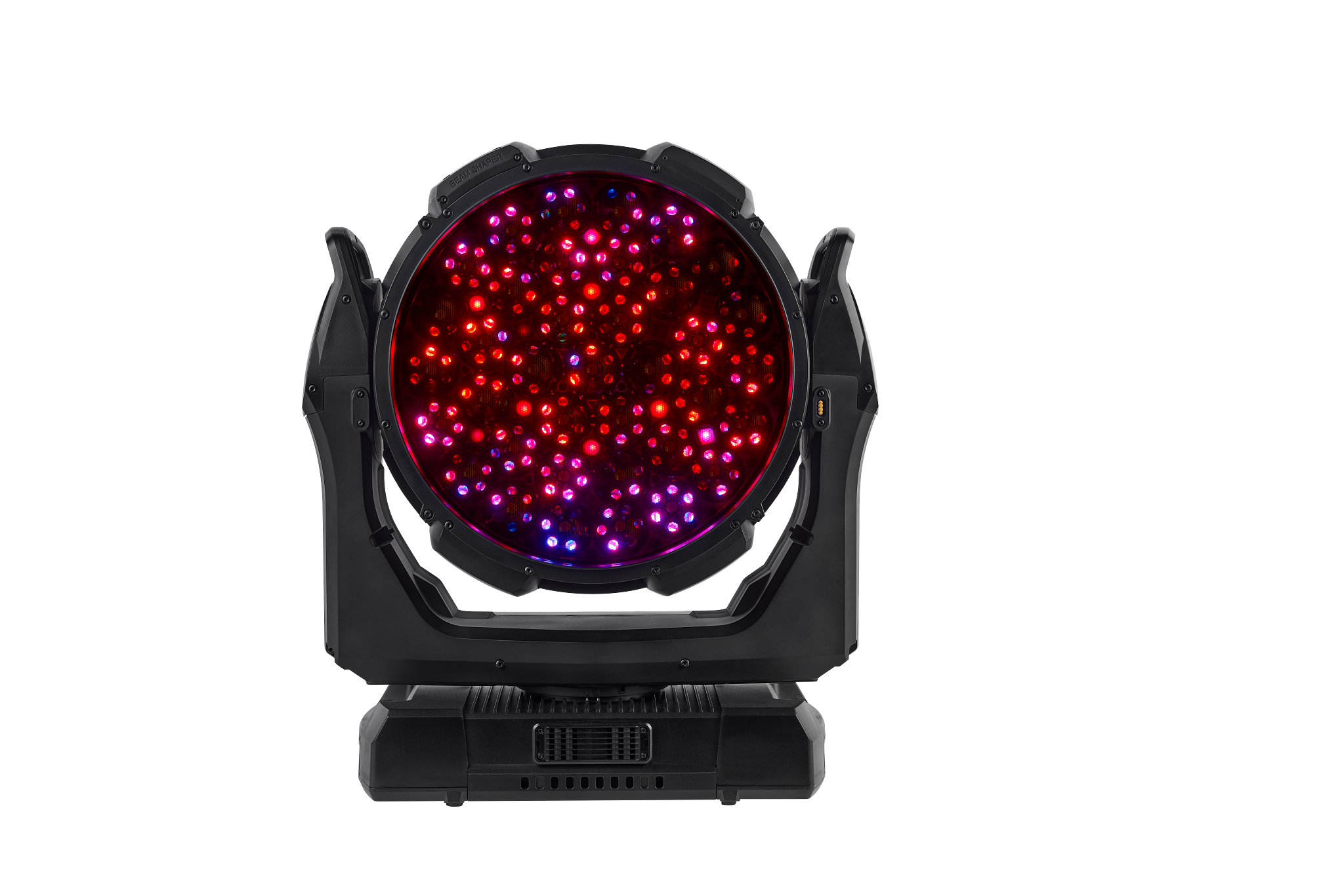 - 16-Bit-steuerbare Parameter: Beam- und Aura-Dimmen, Beam-Farbmischung, Zoom, BeamShaper-Indexierung, Pan und Tilt