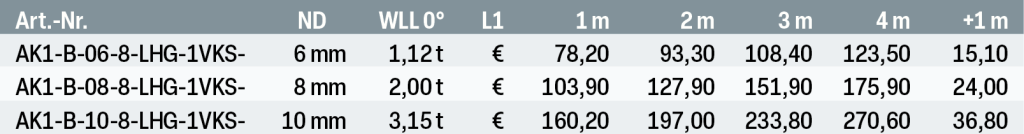 Montagezubehörtyp | Anschlagseil/Anschlagkette |