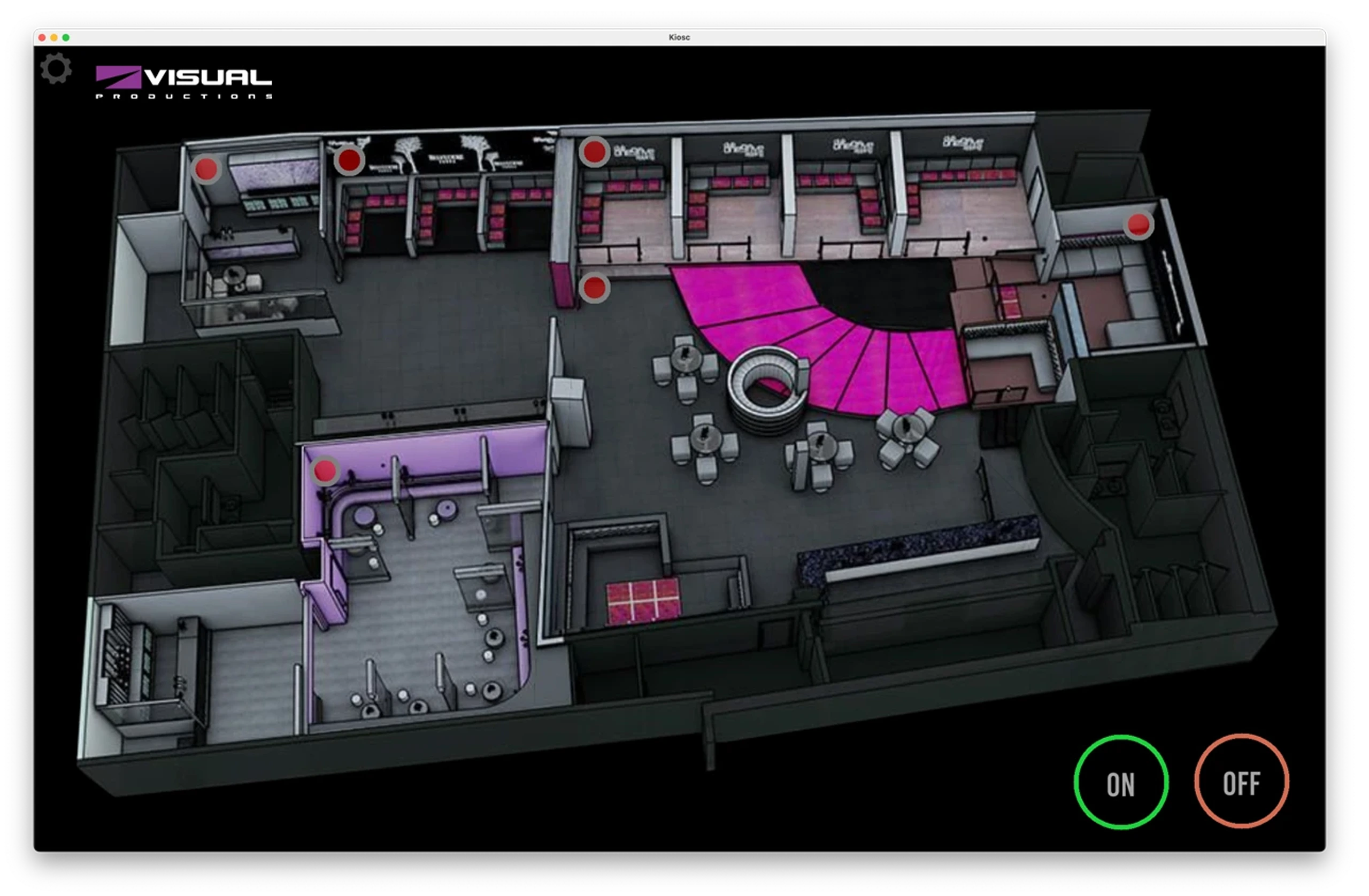 KioscTouch2 lässt sich vollständig mit der Kiosc Editor App anpassen. Diese steht kostenlos auf der Website von Visual Productions zum Download bereit. Mit der App können Sie Ihre Steuerungsoberfläche nach Belieben einfach oder umfangreich gestalten.