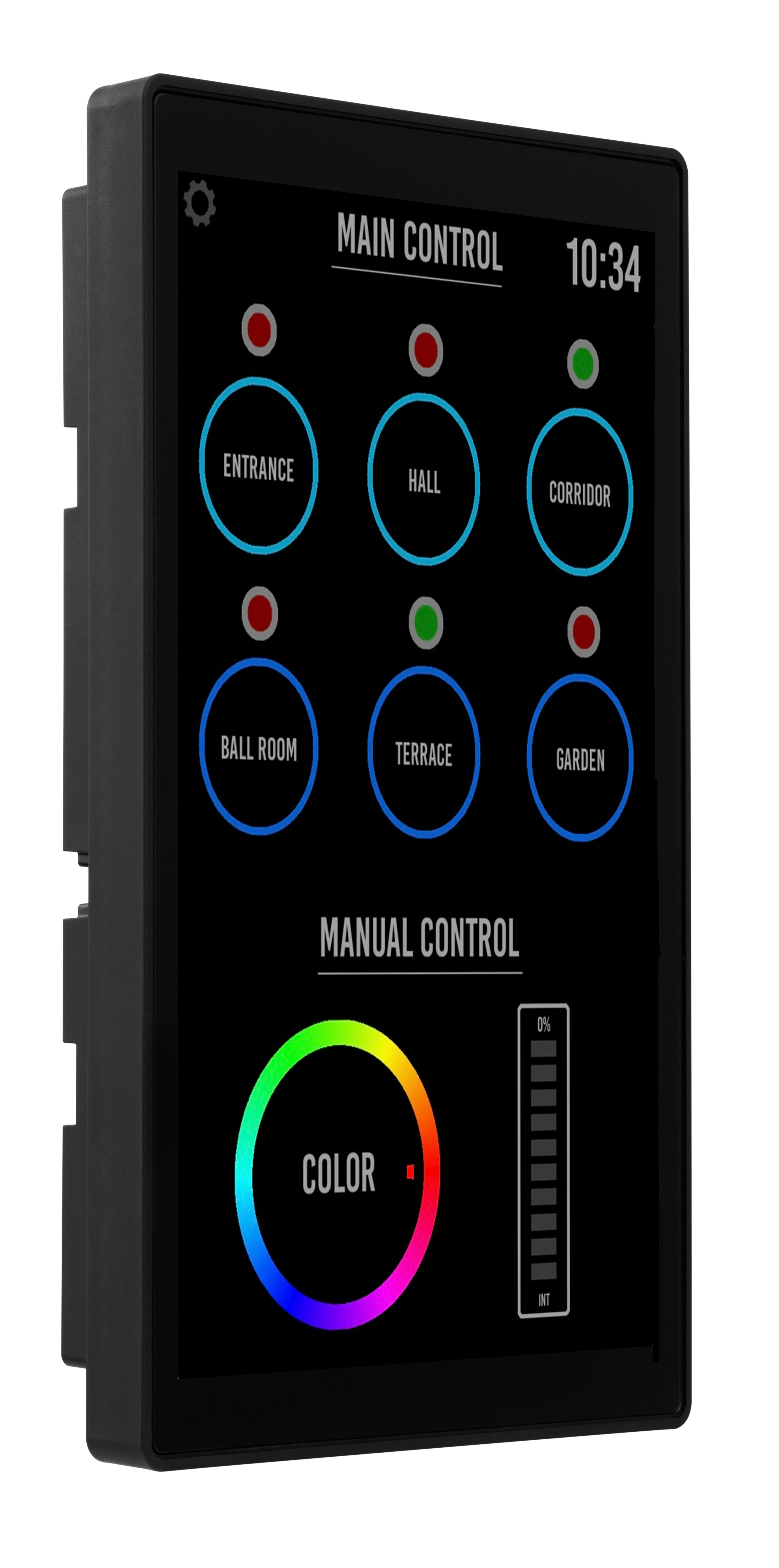 KioscTouch2 ist ein wandmontierter Touchscreen, der als intuitive Benutzeroberfläche für Ihr Lichtsteuerungssystem konzipiert wurde. Er bietet umfangreiche Personalisierungsoptionen, sodass Sie die Benutzeroberfläche vollständig an Ihre Bedürfnisse anpassen können.
